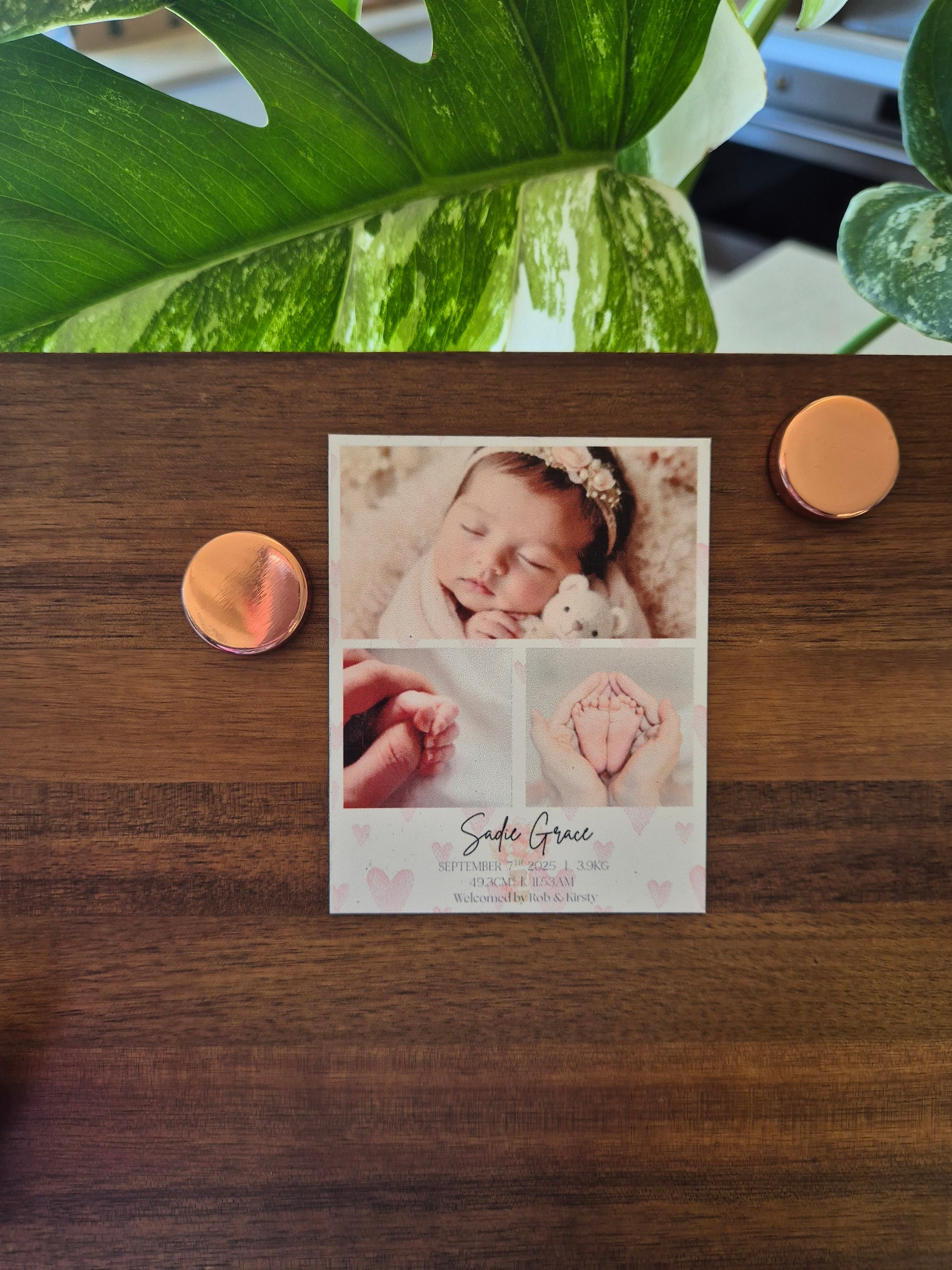 Celebrate your little one’s arrival with our Baby Announcement Magnet — a sweet, heartfelt keepsake designed to honour every precious detail of their birth. Featuring your favourite photo alongside their name, birth date, time, weight, and length, this design creates a beautiful snapshot of a moment you’ll treasure forever.