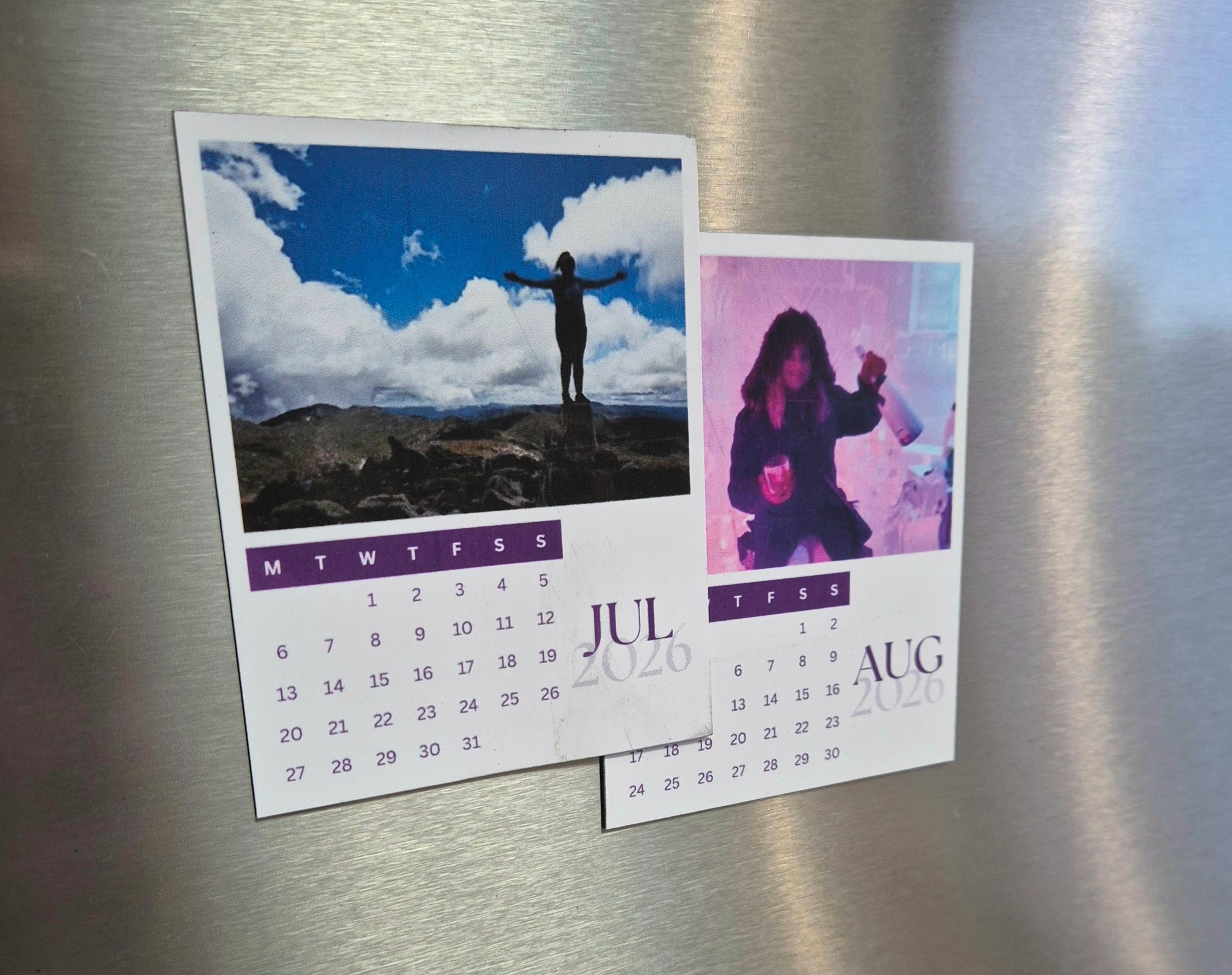 Keep your favourite memories close all year long with our Magnetic Photo Calendar set — a collection of 12 individual magnets, one for each month. Each magnet features a clear monthly calendar layout paired with a photo you upload, making it both practical, personal and the perfect size to stick anywhere!
